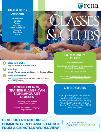 Families can use Ministry funds to support parts of their educational program, including RCOA classes or clubs, community sports programs, music or art lessons.