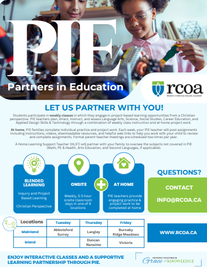 Your PIE Teacher will plan, oversee, and assess Language Arts, Science, Social Studies, Career Education, and ADST.